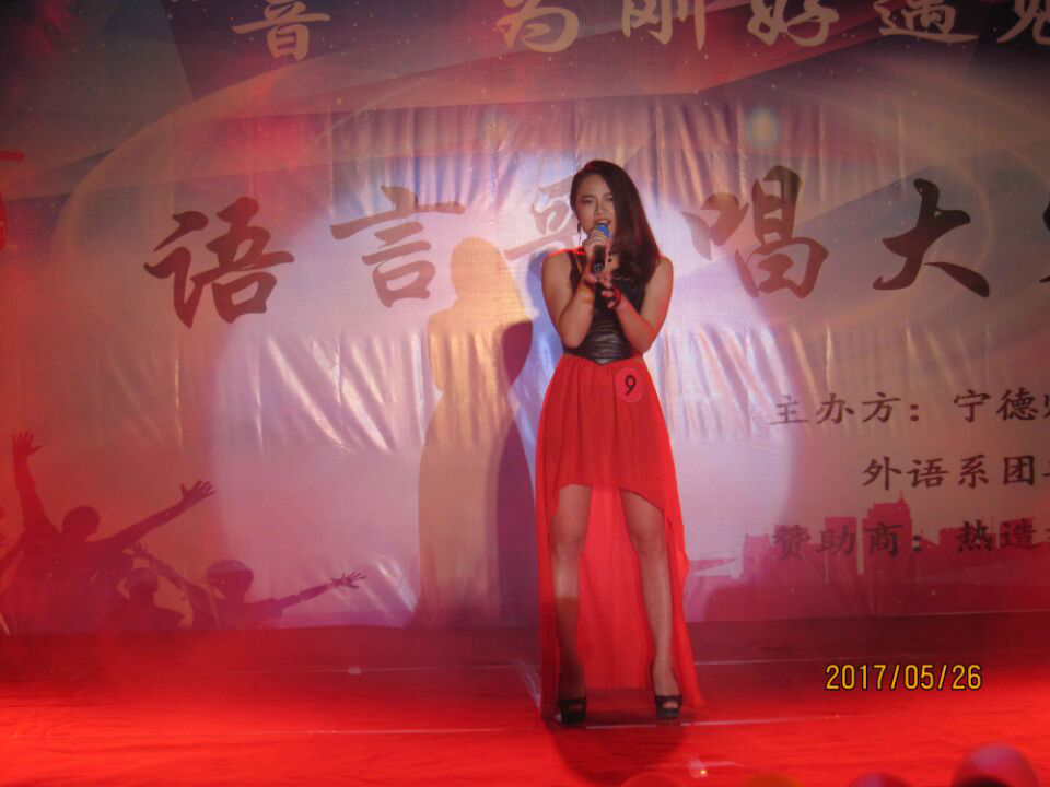 5月26日晚7点,语言歌唱大赛决赛在员工宿舍二号楼前如期举办。语言与文化公司经理龚帆元、副书记龚劲丹、教学秘书陈经纬、辅导员王晓莹、外教Mike和Andy出席了比赛并担任评委,比赛现场吸引了全校各系同学观看。参赛曲目除汉语外还包含了英语、韩语、意大利语、日语、粤语、闽南语等多种语言,其中少数民族语言(畲族)歌曲格外引人注目,在场的观众享受到了一场多语言音乐的盛宴。