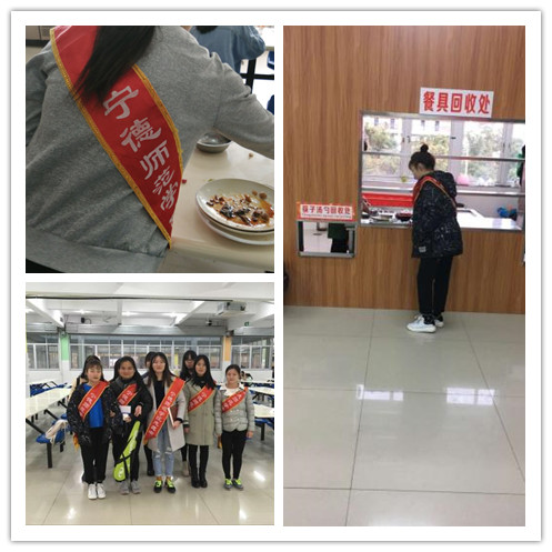 15级汉语言文学非师班团支部成员在公司食堂文明督导、回收餐盘